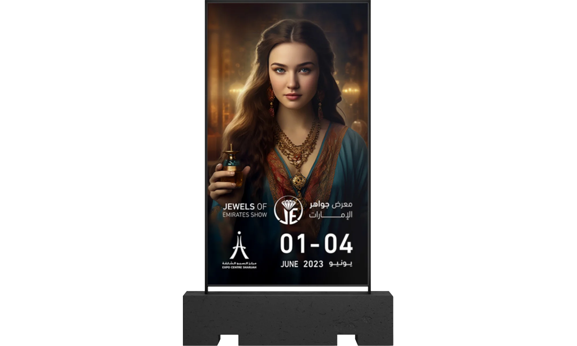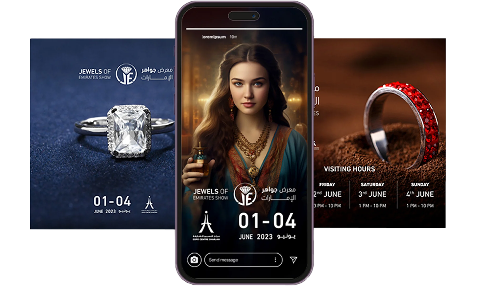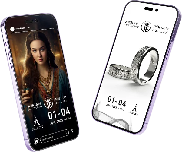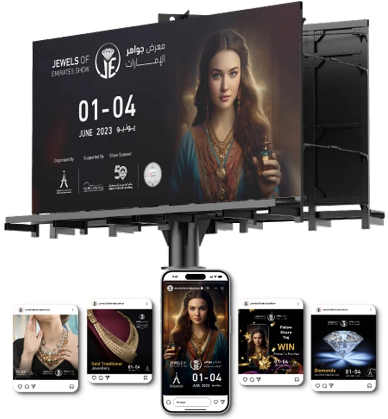 Jewel of Emirates Show stands as an epitome of exquisite jewellery exhibitions at the Expo Centre Sharjah. Our efforts have not only graced the pages of esteemed news and media publications but have also set a pioneering benchmark by integrating an AI model within the GCC & MENA, revolutionising campaign promotions.